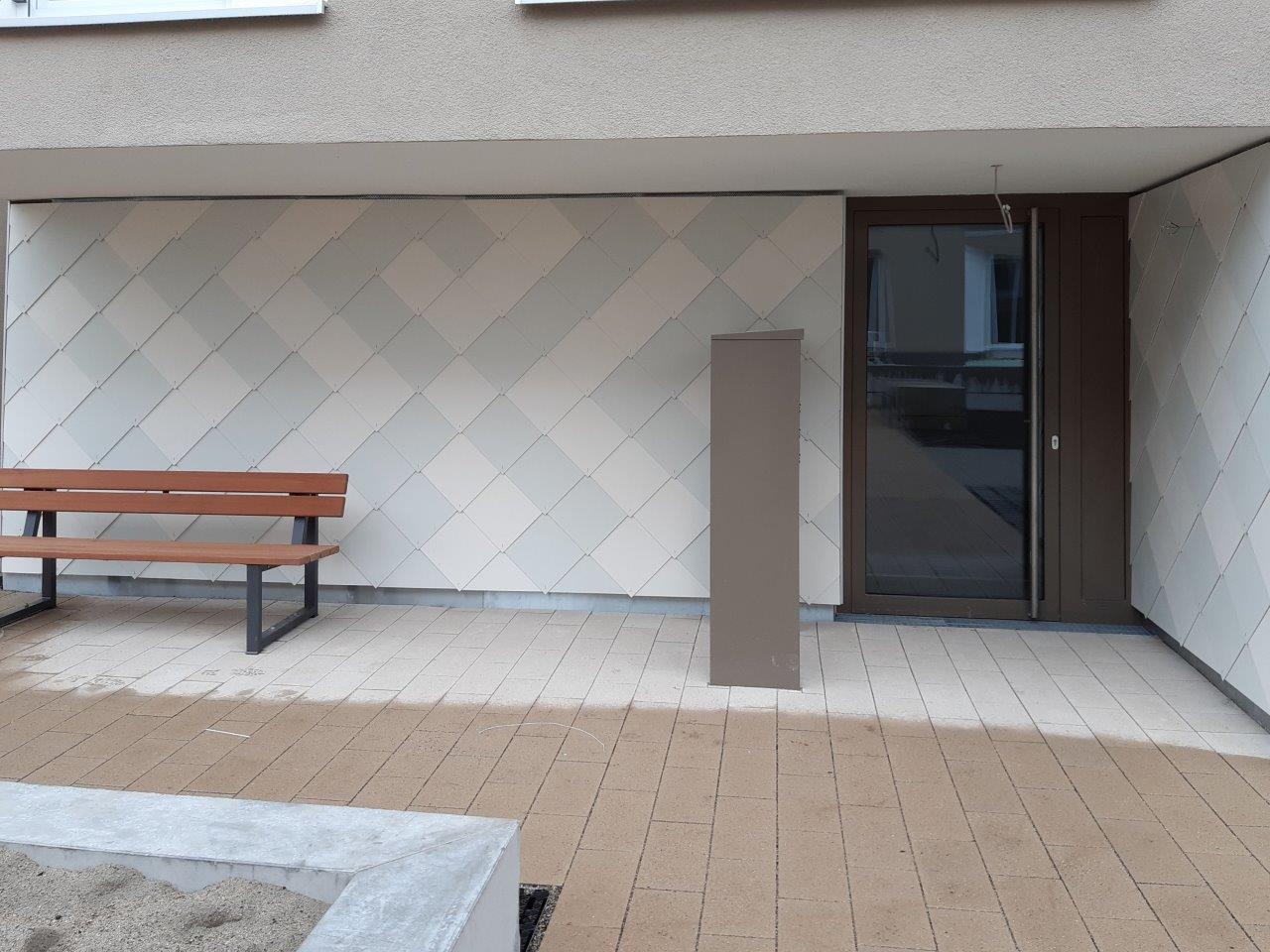 Bürogebäude mit Sichtschutzwänden Deisslingen, Eternit Natura 8 mm Anthrazit N 251